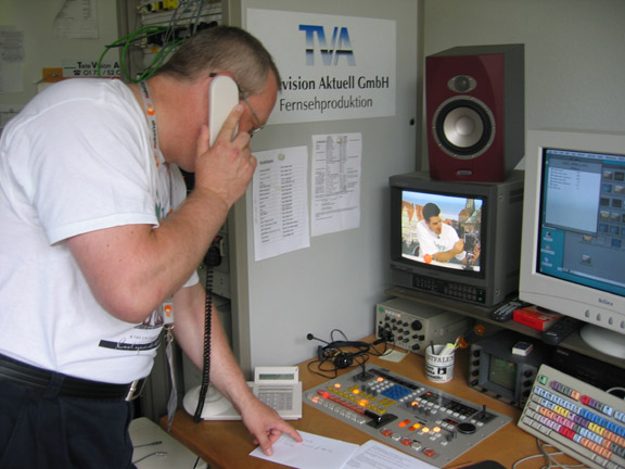 Jacky was on the phone with their producer giving the spelling of names and so on. They had some technical difficulties getting the satellite link.